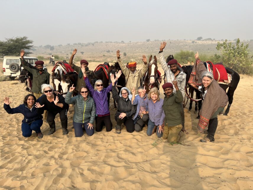 There were so many highlights, especially camping in the remote desert (and having a flush toilet in each of the tents in a separate bathroom area!) A couple of nights local musicians came to our camp, and we were able to experience regional music and dance. The Marwari horses were a delight to ride, and we experienced a variety of riding from walking through villages to long stretches of canter on soft paths to up and down some very steep sand dunes. It was fabulous that the whole group was in sync with the right fitness and riding experience.