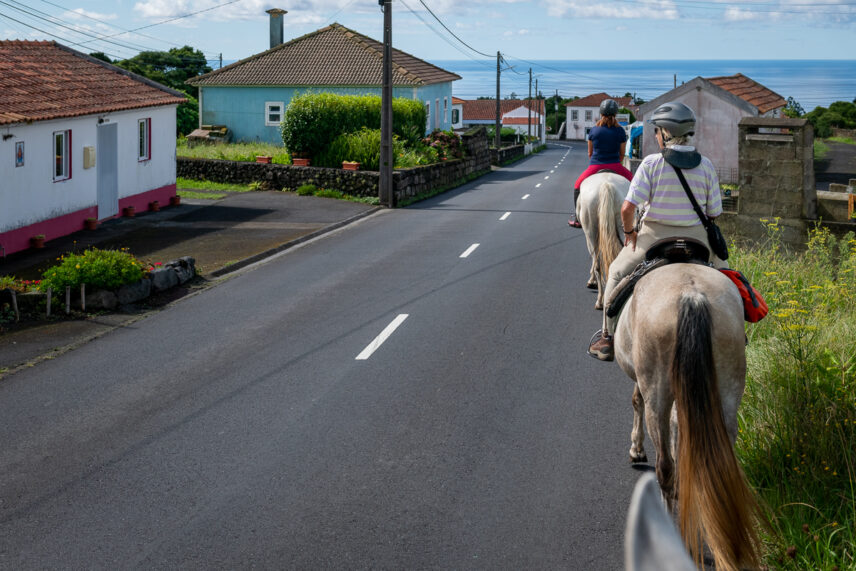 Every woman who signs up for a trip where riding is one of the headliner activities is going to have at least one thing in common: a shared interest in horses. It doesn’t hurt that the horses at Pátio Ecolodge in Cedros, Faial (our home base for the week) were all Portuguese Lusitanos or Lusitano-crosses — essentially the Barbie Dream Horses of the equine world. What young (or young-at-heart) girl doesn’t dream about galloping off into the sunset aboard one of these magnificent steeds with their luxurious manes and tails blowing in the wind?!