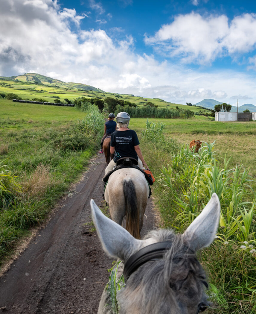 After breakfast and a briefing, we will transfer to the paddocks to reunite with our horses. Our guide will help us prepare our horses for today’s jungly trail and steep ascent into the mountains of Faial.