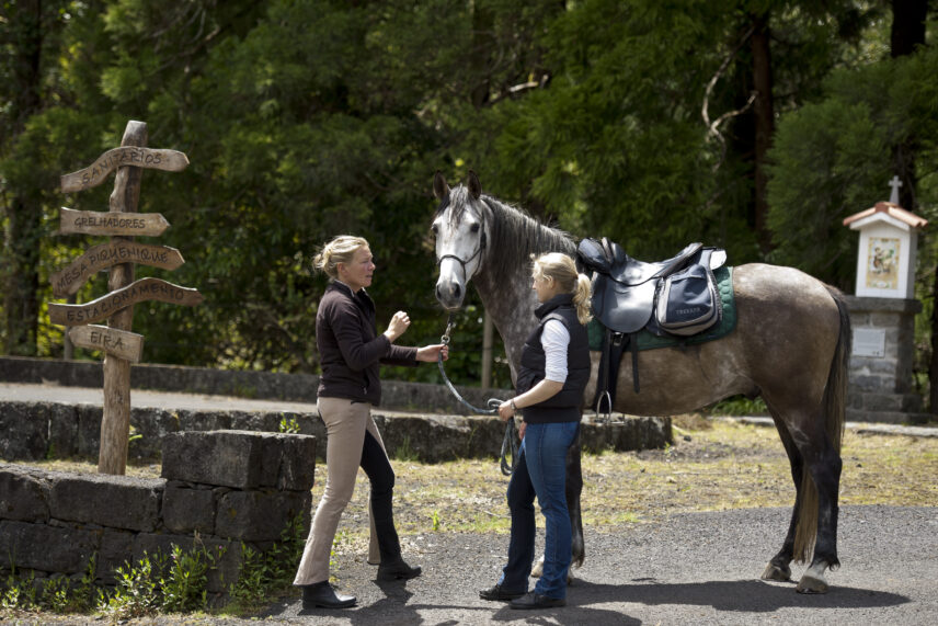At the top, for those who are experienced and confident, we have the opportunity to canter a long distance. As we approach the forest, we tie our horses to the fenceline and sit down to a typical Azorean picnic in a truly mystical setting. We can continue to chill or join our guide on an interpretive walk to learn about the endemic plants and their importance.