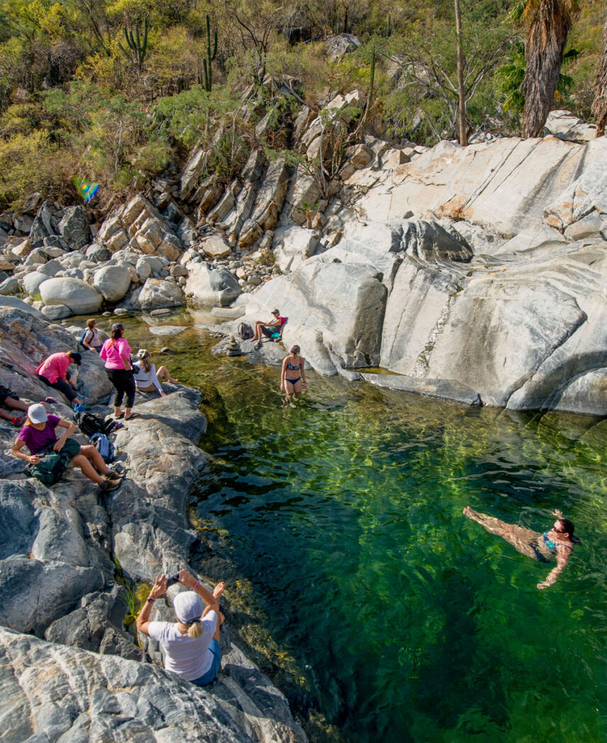 Our adventure begins with a night of canyon camping under a star-studded sky with nearby natural hot springs to soak in. We then journey to La Paz with its beauty and charm, voyaging around the coast of Espiritu Santo Island, where life teems beneath the water and around us as we kayak.