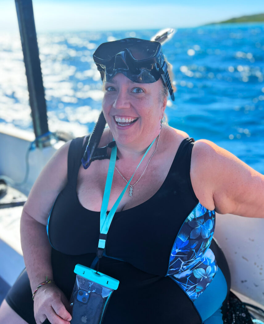 • checkmark icon Being in and on the water: swimming, snorkeling and in a motorboat (PFDs are provided)