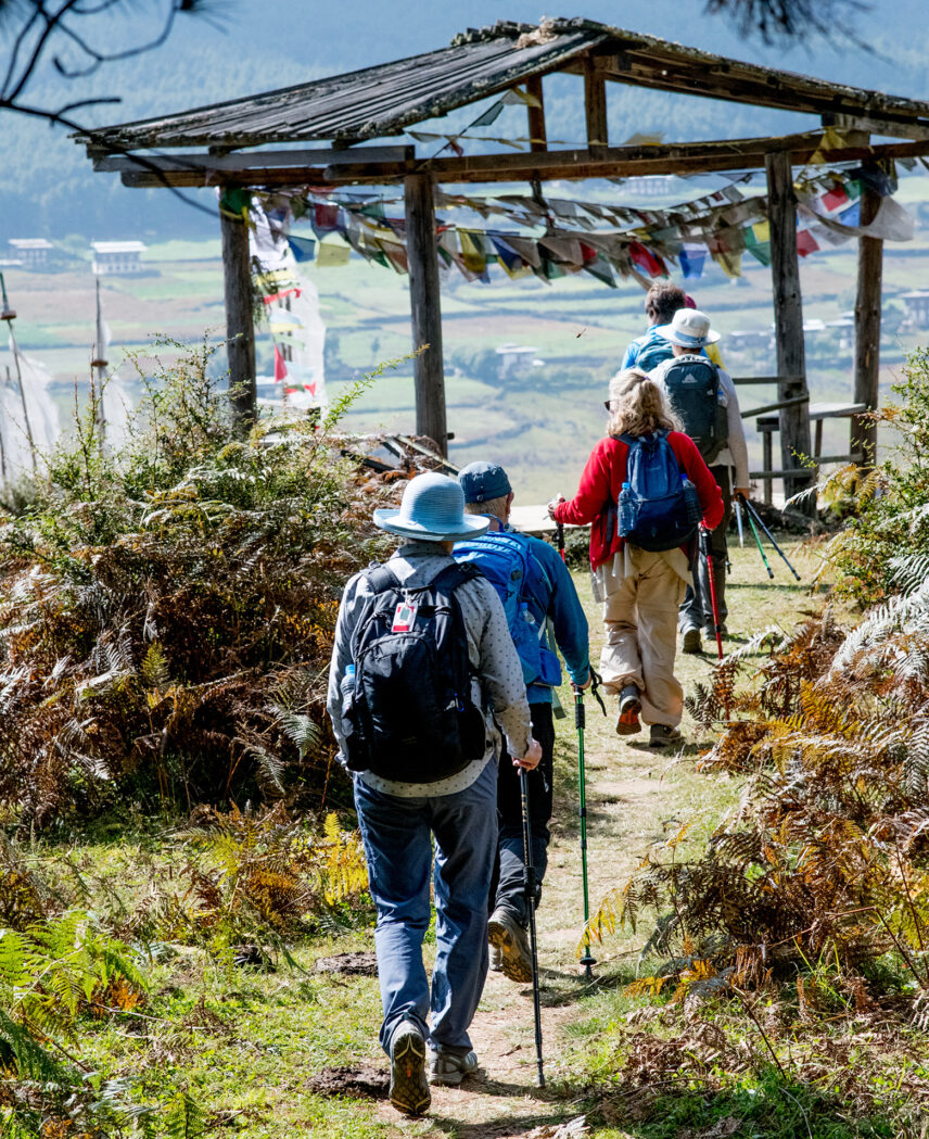In Kingathang village, we visit a temple built by Bhutan’s Queen Mother and continue on an easy route via Yusa village back to our hotel.