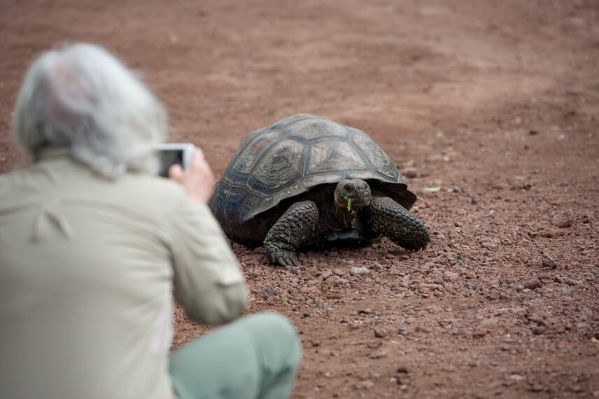 We board a motorboat to the “big city” of Puerto Ayora on Santa Cruz Island. Here, we visit the highlands of Santa Cruz to get up close and personal with the Galápagos giant tortoise.