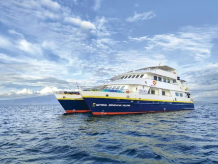 It’s time to head to the Galápagos! After breakfast, you’ll fly from Quito to Baltra Island, located in the heart of the archipelago. As soon as you land, the atmosphere shifts—you’re stepping into one of the planet’s most extraordinary ecosystems. A short bus ride takes you to the harbor, where our expedition team will be waiting to welcome you aboard the National Geographic Delfina.