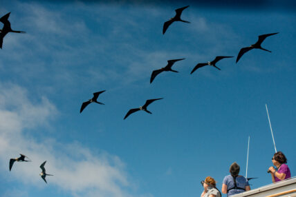 Wake up sailing across the Equator into the blissful northern reaches of the Galápagos, where warm tropical waters welcome you to a seabird paradise. Think red-footed and Nazca boobies, elegant swallow-tailed gulls, and majestic frigate birds nesting all around you—nature’s very own bustling bird sanctuary.