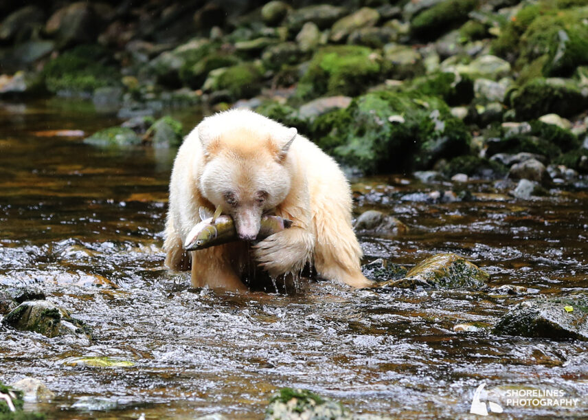 With luck (and quiet hearts), you may just witness the breathtaking sight of a Spirit bear fishing for salmon, or a black bear padding silently through the forest’s emerald hush.