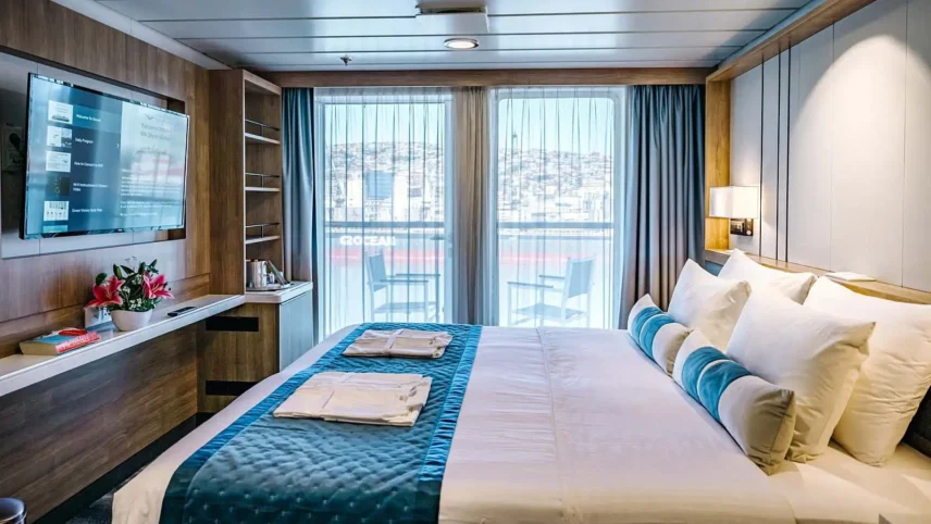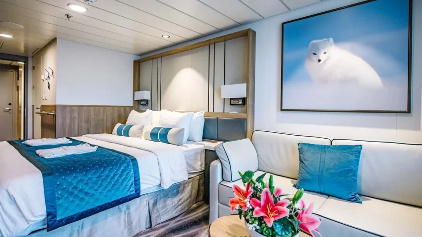 The ship offers welcoming social spaces—panoramic decks, lecture lounges, a library, and outdoor areas—ideal for connection and reflection. Guests can join hands-on workshops to inspire creativity, and stay in 93 ocean-view cabins (many with private balconies, plus single options). Basic Wi-Fi keeps travellers connected while fully immersed in the journey.