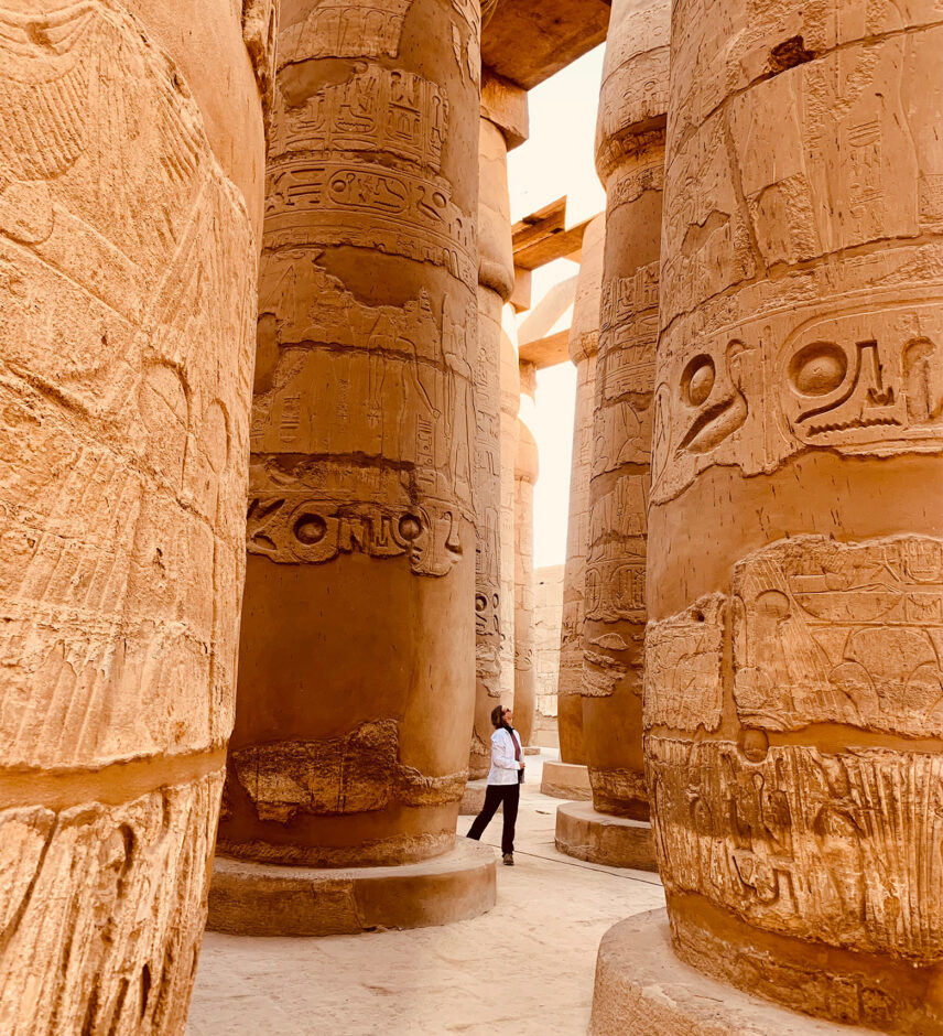 Over an authentic welcome dinner, we gather together for the first time, swapping stories with our Egyptian guide, a trusted female Egyptologist, and excitedly anticipating everything that’s to come. Our hotel rooms look out onto the pyramids, sweeping us up in Egypt’s magic and setting the tone for the coming days. We get to spend two nights here in order to fully enjoy this surreal setting and all of the hotel’s amenities.
