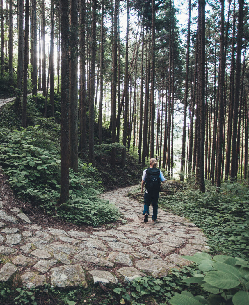 On the lotus flower-shaped Women’s Pilgrimage Course, you’ll see the seven traditional sacred precinct shrines. Women were forbidden to enter the Koyasan in the past and were only permitted glimpses of the holy sites. This grounding journey follows ribbons of streams, old-growth forest, historic shrines and time-worn deities and iconic red torii gates of the Kii mountains.